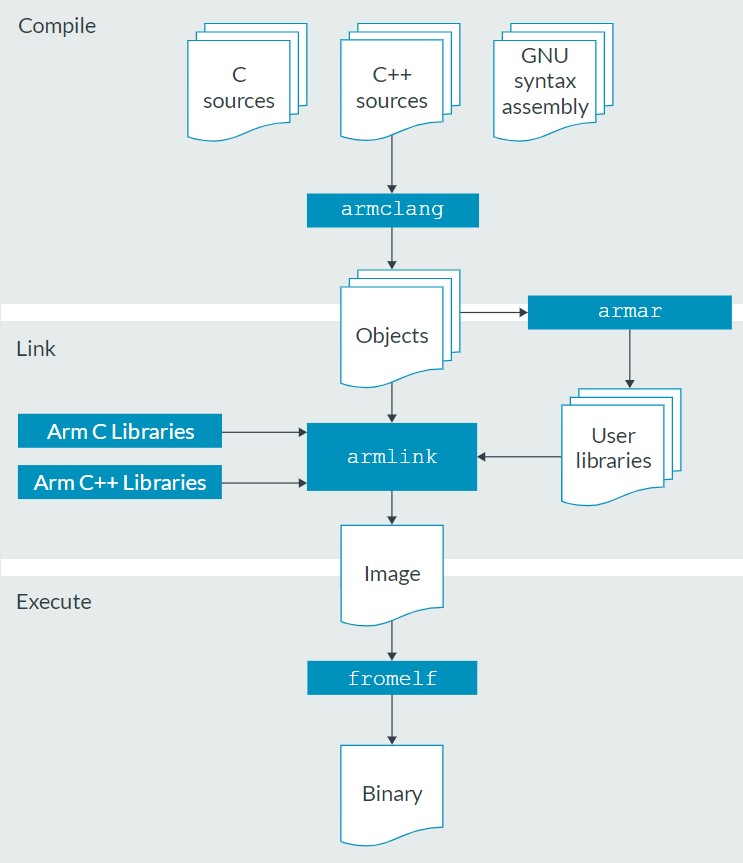 ● armlink:功能豐富的專用嵌入式鏈接器,將對象和庫結合起來生成可執行文件