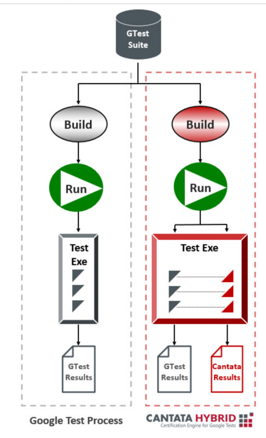 CANTATA HYBRID是認(rèn)證CANTATA工具的一個(gè)專門子集,它提供了一種獨(dú)特的方法來(lái)執(zhí)行現(xiàn)有的Google tests,而無(wú)需在認(rèn)證Cantata工具中進(jìn)行任何修改。它產(chǎn)生所有必要的認(rèn)證測(cè)試和代碼覆蓋結(jié)果,以符合安全標(biāo)準(zhǔn)。