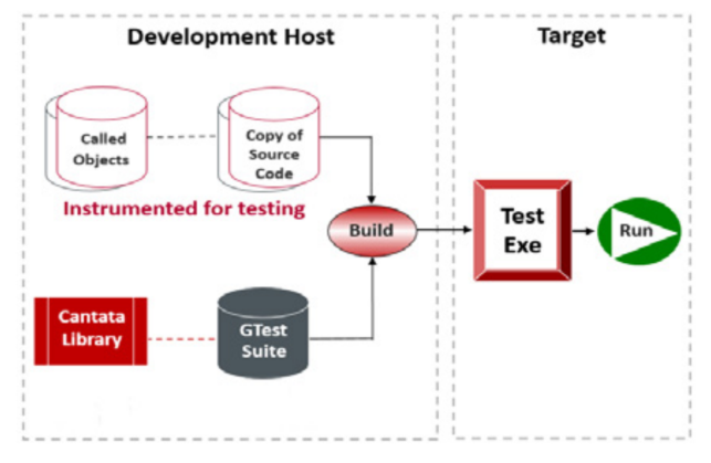在CANTATA HYBRID下的Google測(cè)試可以在任何目標(biāo)平臺(tái)上運(yùn)行,其中已經(jīng)為Cantata提供了針對(duì)特定目標(biāo)的部署(模擬器、模擬器或物理目標(biāo)板)。當(dāng)測(cè)試exe在目標(biāo)上運(yùn)行時(shí),功能和代碼覆蓋率測(cè)試結(jié)果被定向回主機(jī)以生成報(bào)告。