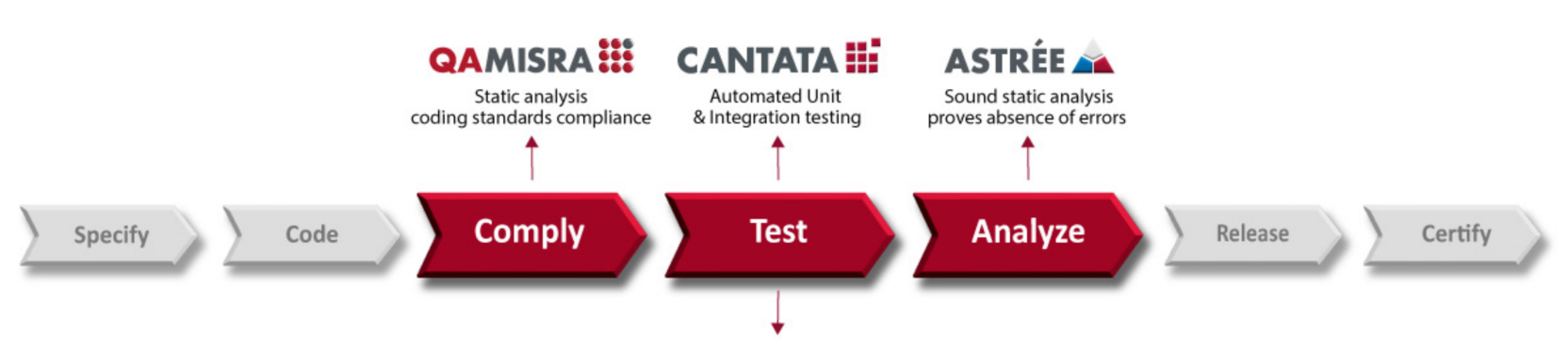 QA Systems靜態(tài)分析和動(dòng)態(tài)軟件測(cè)試工具支持以下軟件開發(fā)線性流程中的驗(yàn)證。JNH官網(wǎng)建議對(duì)這些驗(yàn)證階段應(yīng)用順序方法,并針對(duì)每個(gè)目的使用工具。
