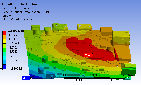 · PCB熱變形 以PCB為研究對象,采用軟件ANSYS Mechanical研究PMC降溫過程及reflow過程中PCB翹曲的變化。