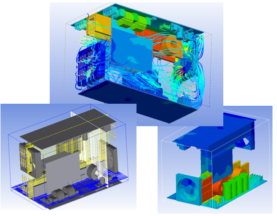 · 電流轉換器散熱分析 以設備整機為分析對象,利用ANSYS ICEPAK分析設備的溫度分布。