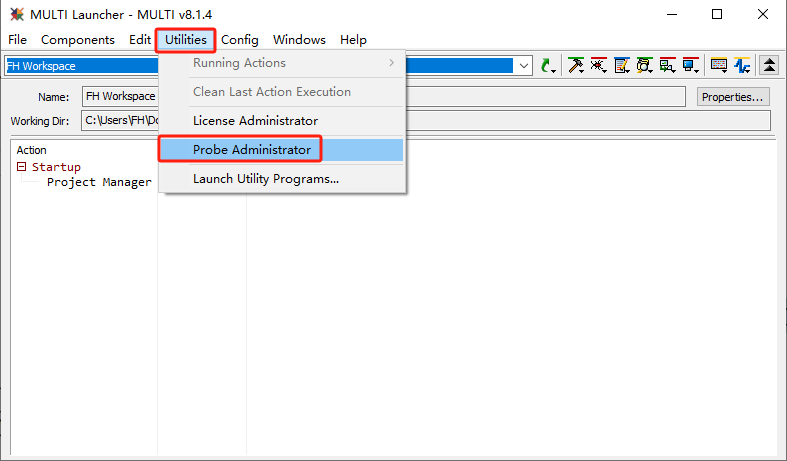 2 打開MULTI IDE 選擇 Utilities → Probe Administrator