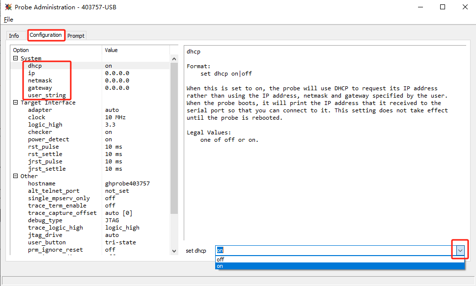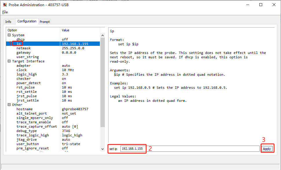 第一次連接Probe V4,進行網絡設置。例如:是否啟動 DHCP,設置靜態 IP 地址,設置子網掩碼,設置網關。