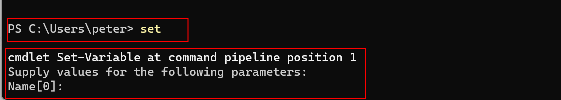 在Windows 11的PowerShell中,"set"的作用是設置或修改變量的值,而不能查看環境變量的值,如圖2-2所示: