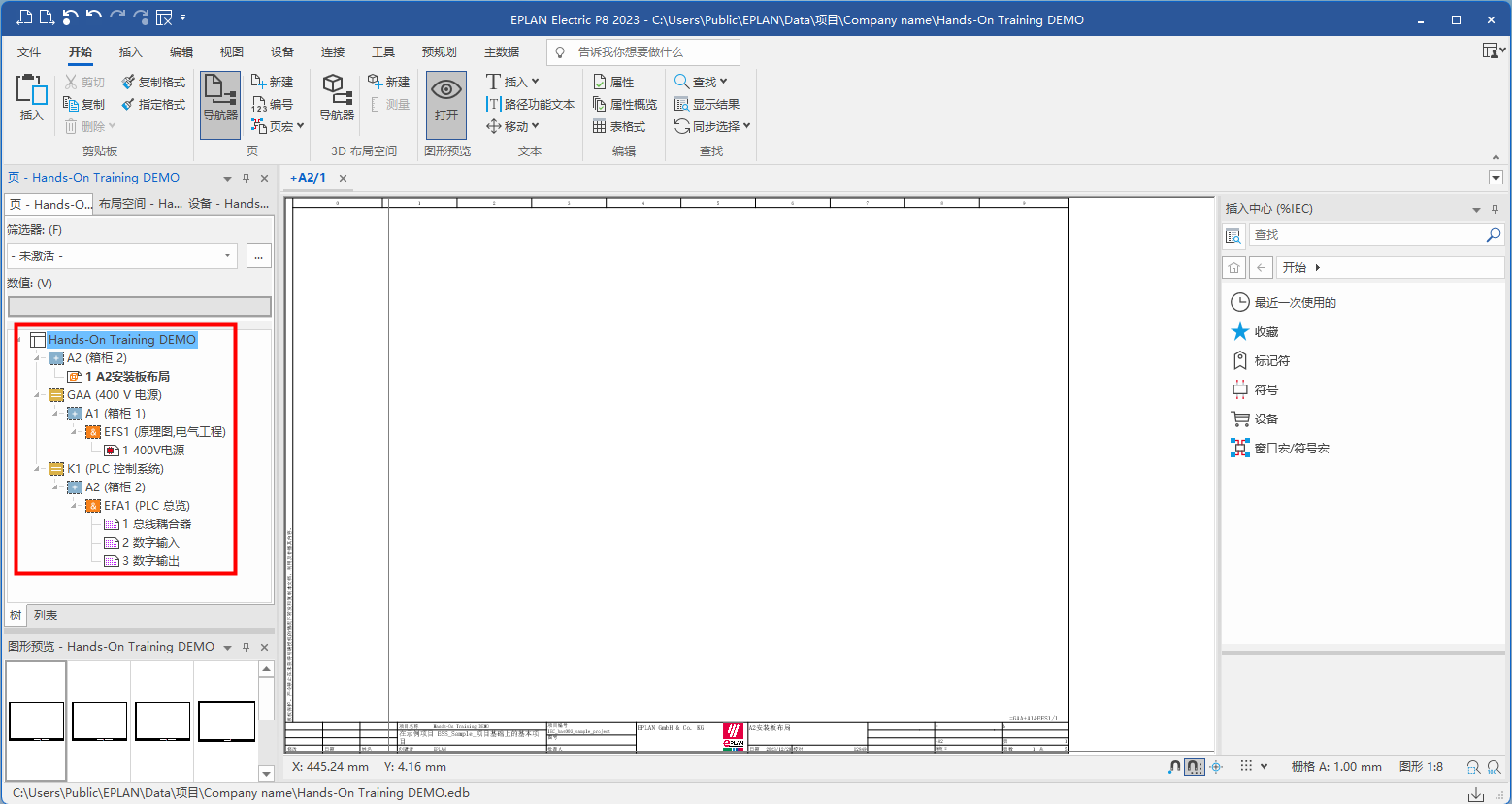 創(chuàng)建完成,打開(kāi)圖紙頁(yè),可以看到圖框右下角的圖紙結(jié)構(gòu)信息;