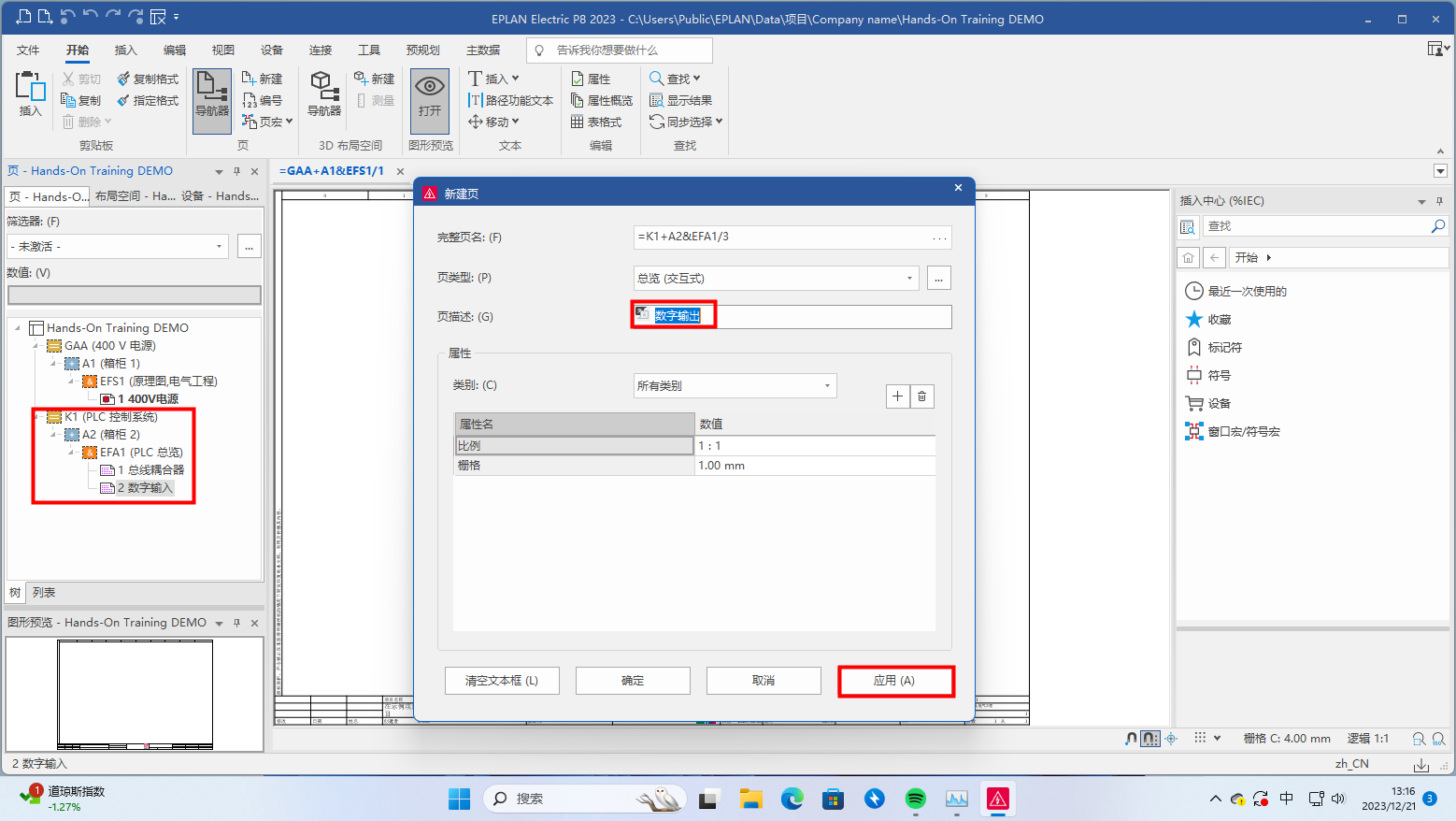 選擇頁(yè)類型:安裝板布局;添加頁(yè)描述,這里需要修改圖紙比例進(jìn)行放大,點(diǎn)擊【確定】