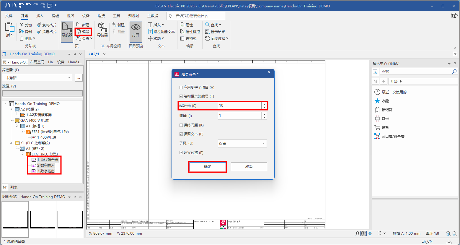 選中需要更改的頁,點擊【編號】,在【給頁編號】對話框下,起始號進行修改,點擊【確定】