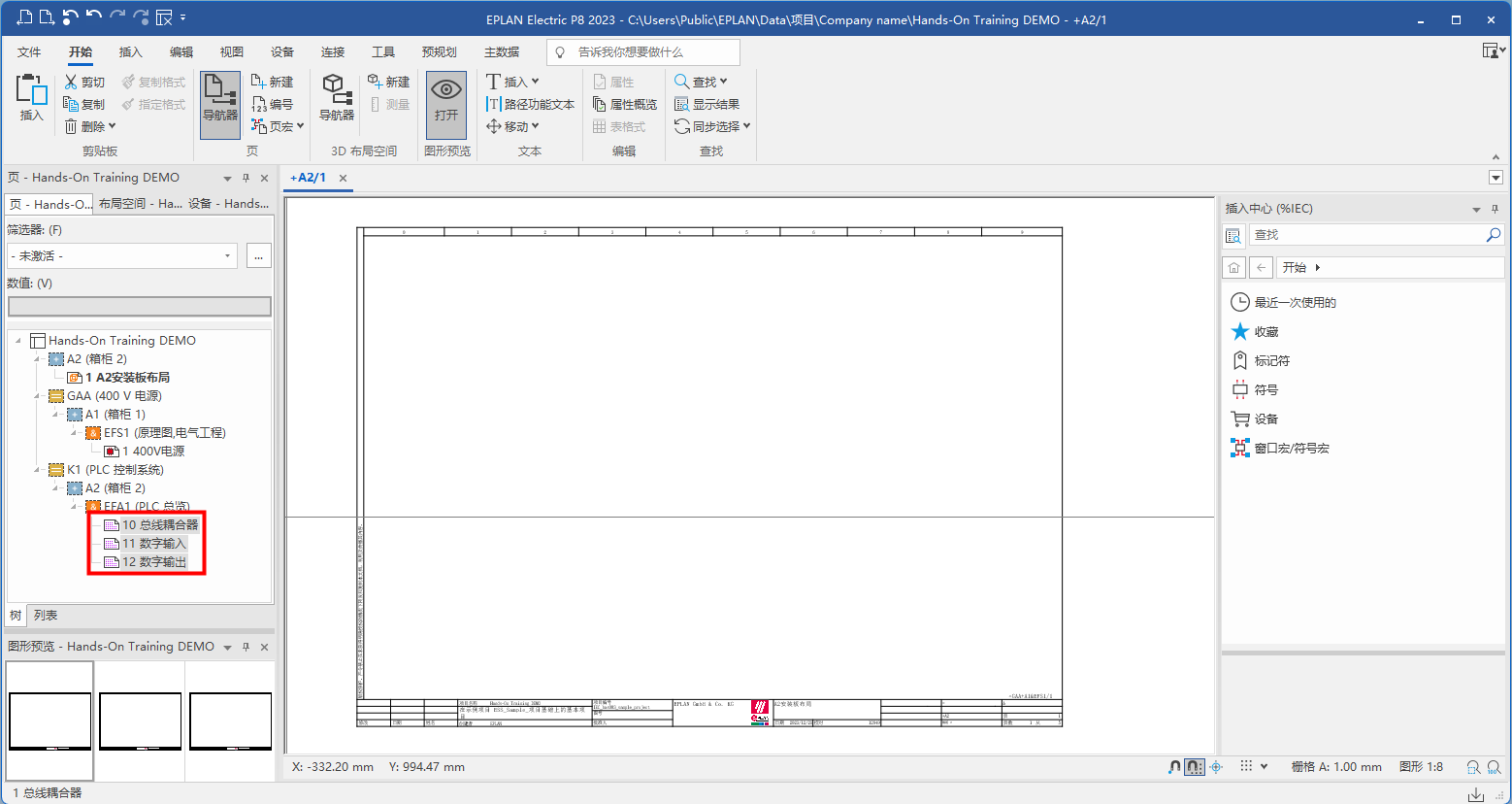 創建完成,打開圖紙頁,可以看到圖框右下角的圖紙結構信息;