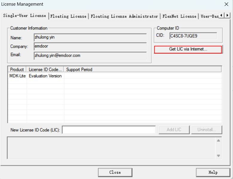 6)、在郵箱內會收到一個社區版本的LIC激活號,將其復制至軟件內的LIC填寫處,點擊<Add LIC>,即軟件激活成功。