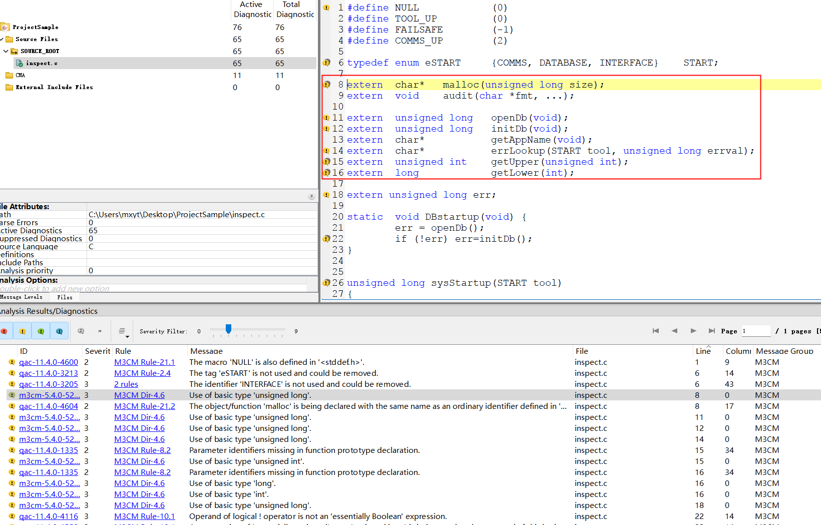 2、在不想?yún)⒓訏呙璧脑创a開始和結(jié)尾處添加注釋“ //PRQA S ALL ++”和“ //PRQA S ALL --”,保存,點(diǎn)擊分析按鈕重新掃描項(xiàng)目;