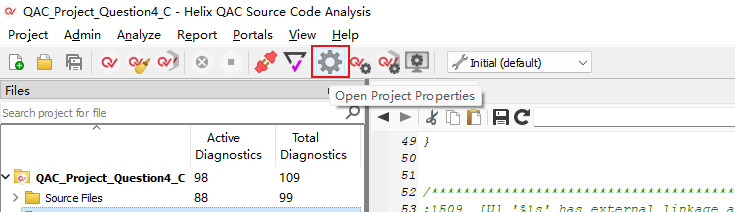 1)、在QAC中打開工程的屬性窗口。(如圖4-1)
