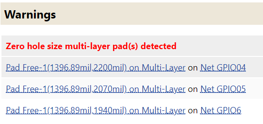 解決Zero hole size multi-layer pad(s) detected 報警錯誤