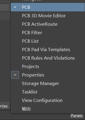 1. 回到 PCB 文件,點擊右下角【Panels】,之后在彈出的菜單中勾選【PCB】。
