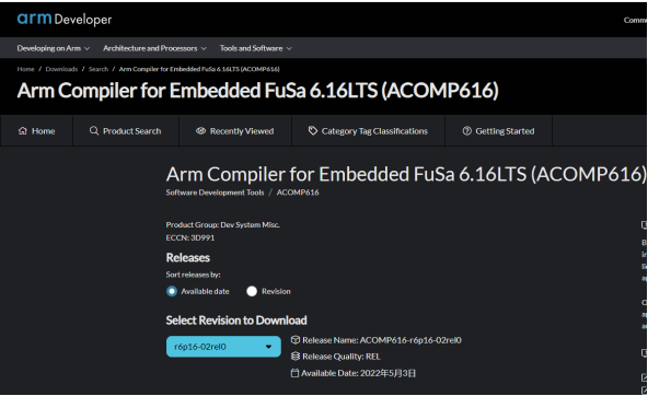 1)、軟件版本:ARM DS Gold/Platinum、MDK Pro或者Arm Compiler for Embedded FuSa 6.16 LTS