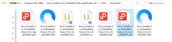 4)、默認(rèn)安裝完成后,在C:Program Files (x86)Arm_Compiler_for_Embedded_FuSa_Qualification_Kit6.16.2documents目錄中存放著開(kāi)發(fā)報(bào)告、安全手冊(cè)等安全認(rèn)證報(bào)告。(如圖4-4)