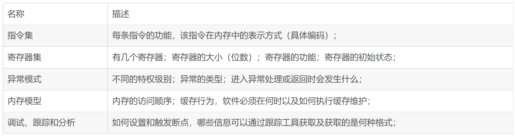 可以將架構看作是硬件和軟件之間的一種規范。架構就描述了軟件可以依靠硬件完成的功能。